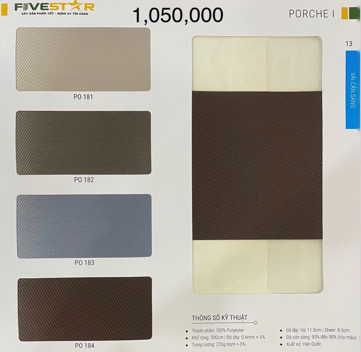 CHẤT LIỆU VẢI RÈM CẦU VỒNG HÃNG FIVESTAR – MÃ PORCHE I
