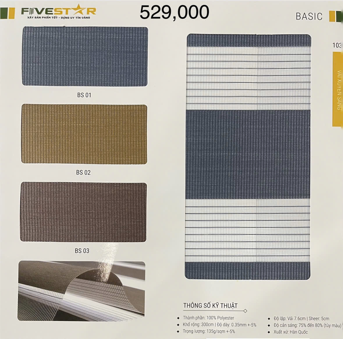 CHẤT LIỆU VẢI RÈM CẦU VỒNG HÃNG FIVESTAR – MÃ BASIC
