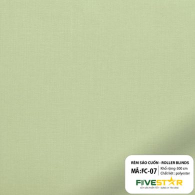 Vải rèm cuốn trơn hãng Fivestar được làm bằng chất liệu polyester cao cấp cản nắng 100% trên bề mặt vải, cản nhiệt cực tốt. Mẫu rèm chuyên dùng cho cửa hướng tây và cách nhiệt ngăn điều hòa.